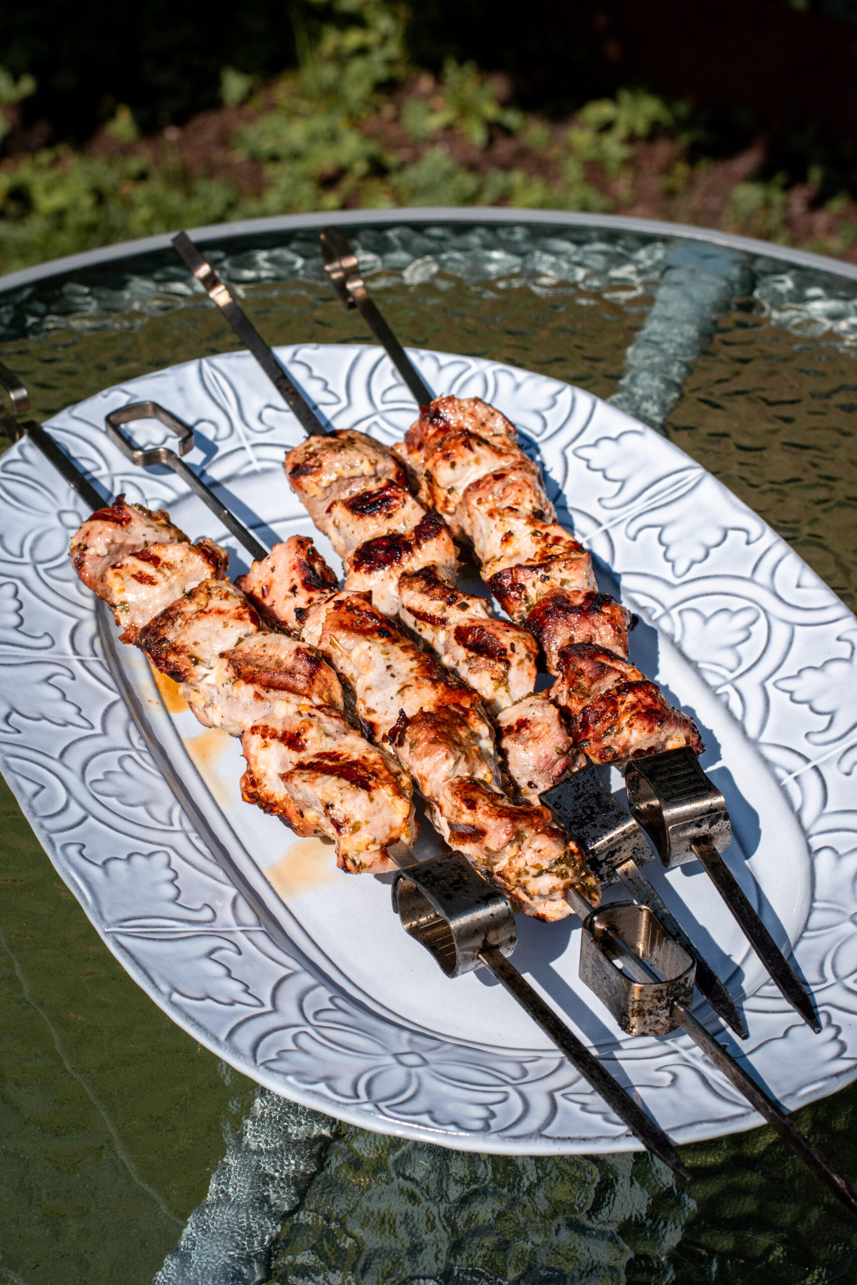 Goda fläskfiléspett som kryddas med en smakrik marinad av salt, peppar, olivolja, vitlök, oregano och chiliflakes. För att köttet ska få en riktigt god smak, rekommenderar vi att marinera det i minst 2 timmar, men helst upp till 4-6 timmar.