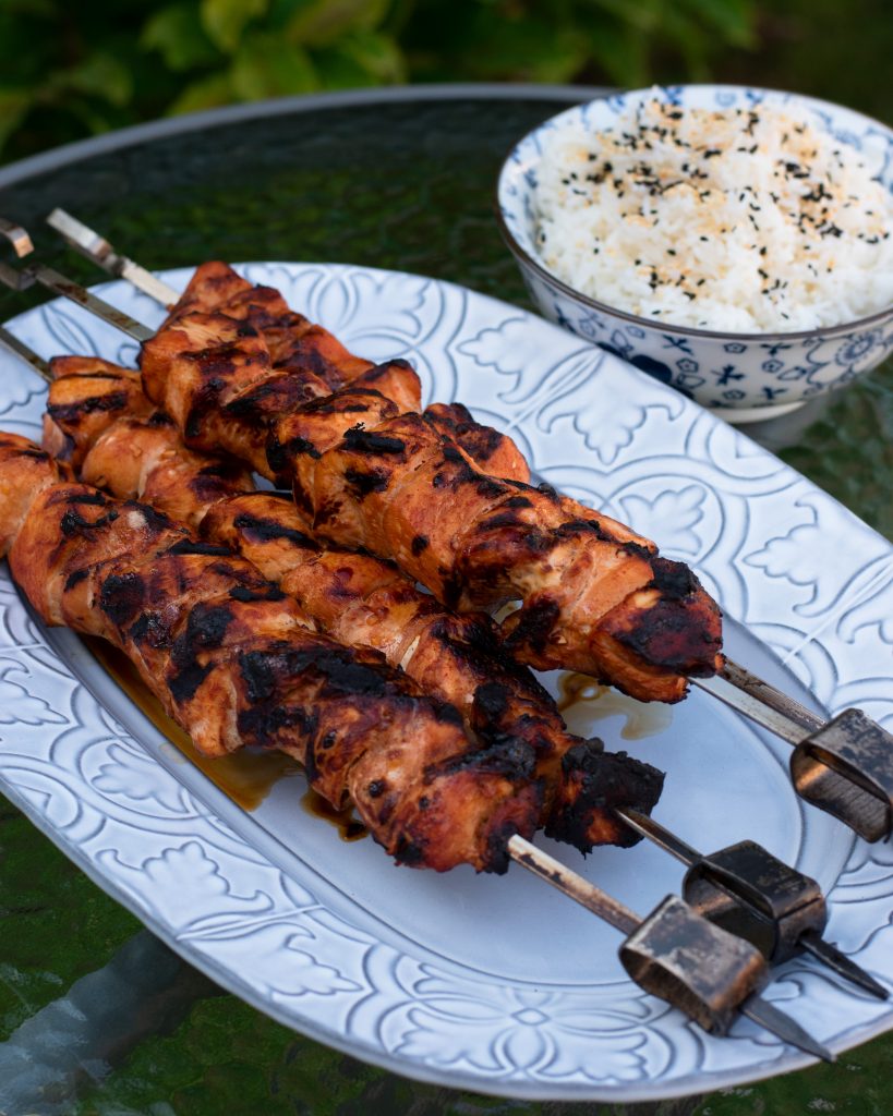 Riktigt goda kycklingspett som marineras i bland annat honung och en koreansk chilipasta.