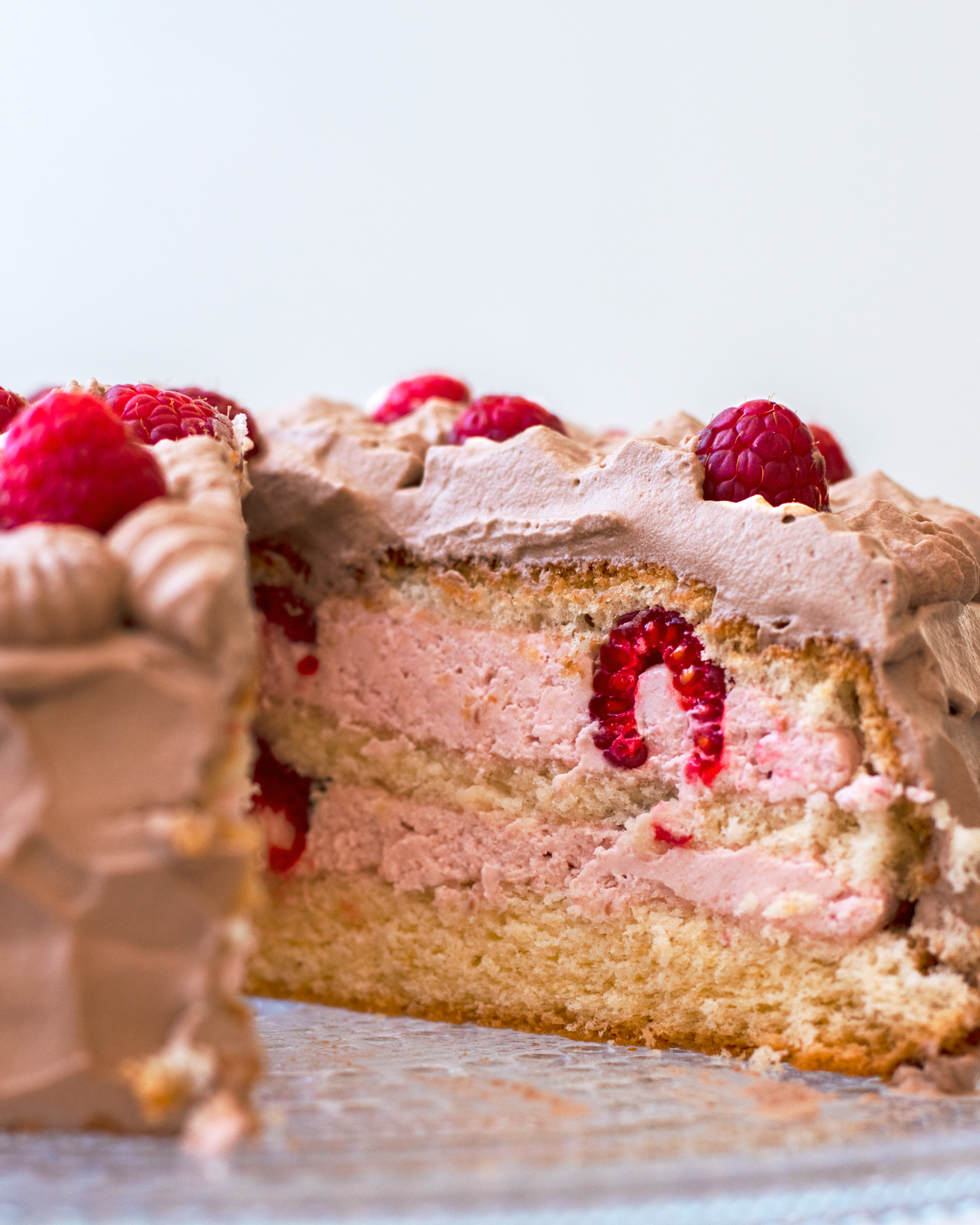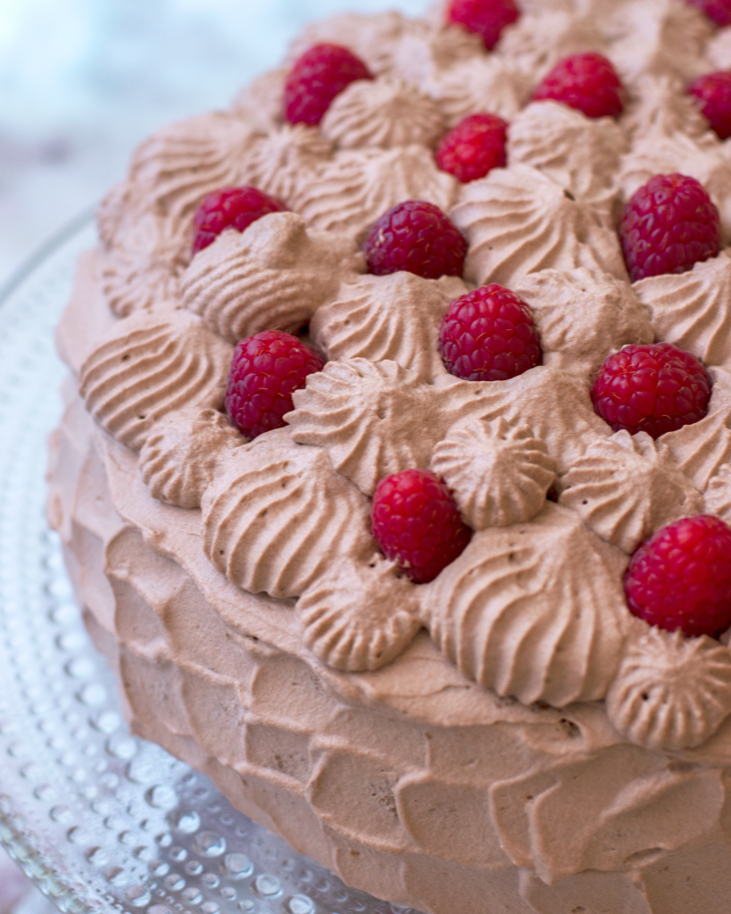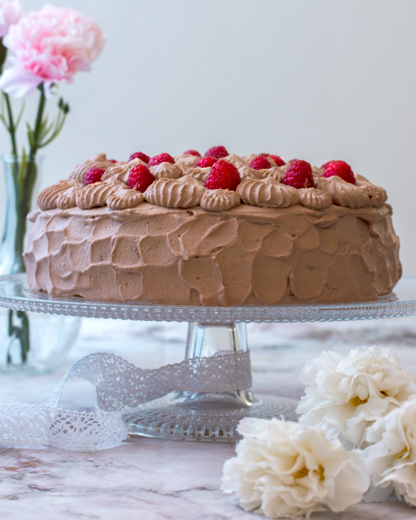 Hallontårta med chokladgrädde