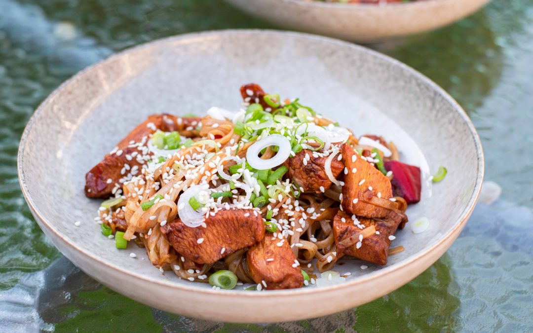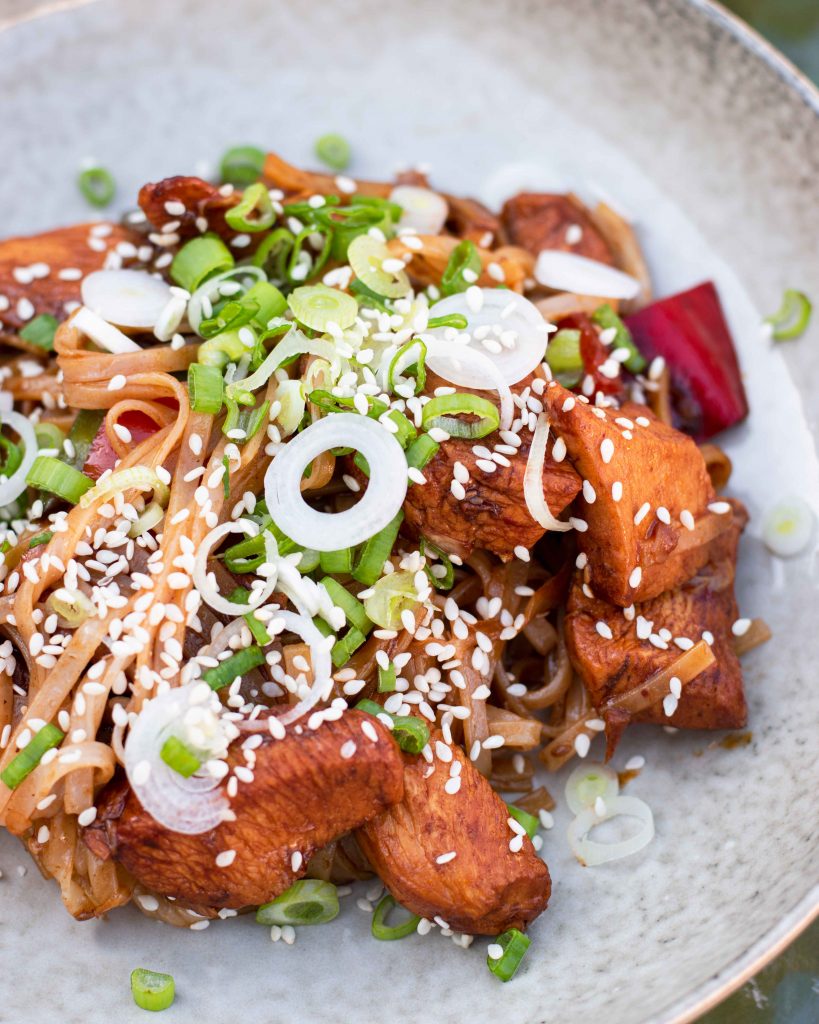 Keyword kyckling med nudlar, kycklingwok, kycklingwok med sesam, nudelwok med kyckling, sesam, sesamkyckling