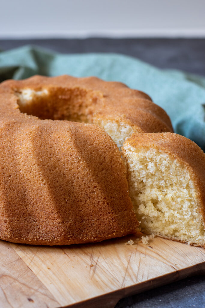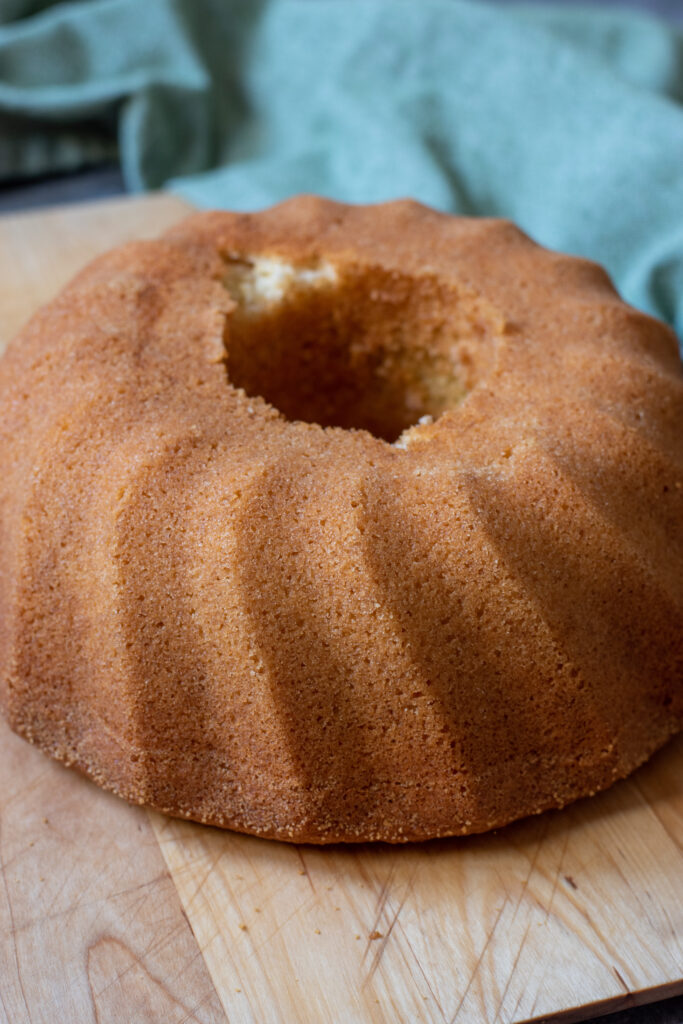 - Ta ut kakan och låt svalna i 10 minuter. Stjälp upp sockerkakan på ett fat och låt svalna helt under formen.